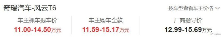 风云T6售价12.99-15.69万元,车主提车价为11.00-14.50万元,标配车型优惠了1.99万元,这其中可能还包含了报废补贴或置换补贴,这么来看的话,这款车的优惠力度并不大,但是价格在同级插混SUV中还不贵。